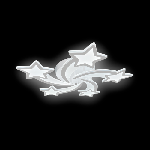 Мощный и компактный энергосберегающий потолочный светодиодный SMART-светильник LD110/5 140W белого цвета мощностью 140 Вт в стиле хай-тек, состоящий из 5 плафонов, в форме рисованных комет. Прекрасно подойдёт для детской комнаты. Пульт из комплекта поставки позволит не только включать/выключать светильник и использовать предустановленные режимы свечения, но и поможет в ручном режиме создать желаемую атмосферу в помещении.